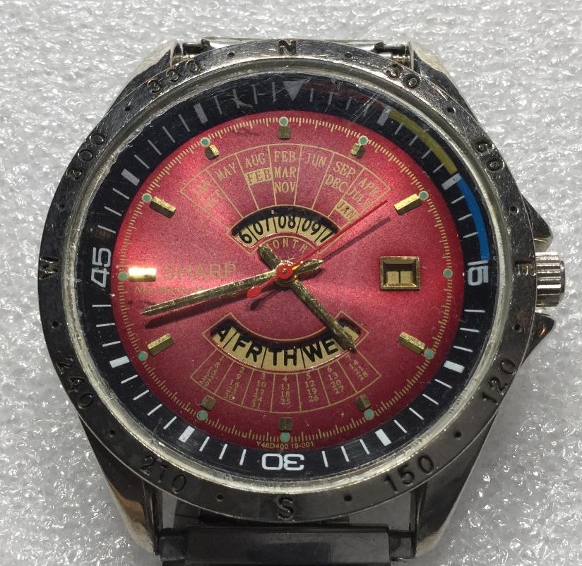 Pozor na fake. Tyto hodinky Sharp funkce víceletého kalendáře nesplňují ačkoliv se to na ciferníku tvrdí. Šířka označení dnů překračuje dva sloupce v tabulce dnů v týdnu. Ve výřezu je proto vidět jen tři a něco dnů v týdnu místo potřebných sedmi dnů. Podobný problém je i u označení posledního dvojčíslí roku. Ve výřezu jsou pouze čtyři. Hodinky tedy ukazují čas, den v měsíci v okýnku a den v týdnu například ve středu výřezu ciferníku. Funkce víceletého kalendáře nejde nastavit, je to jen pro sporný efekt. Použitelné jsou pouze pro lidi, kteří by stejně víceletý kalendář nastavit neuměli.